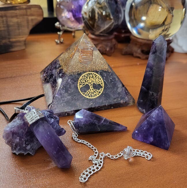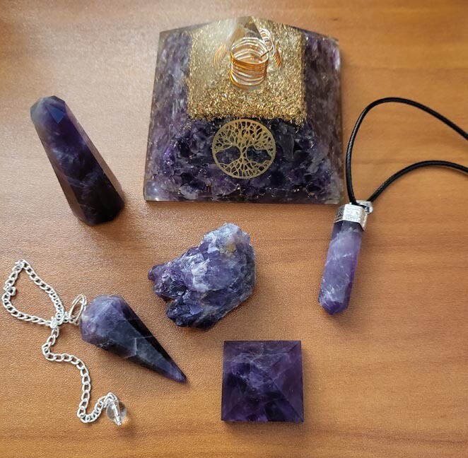 Amethyst brings energies of stability, peace, calm, balance, courage and inner strength. It helps open communication with angels, telepathy and other psychic abilities. It is an excellent stone for meditation dream work or past life work since it clears the chakras and opens a channel for the flow of spiritual energy.